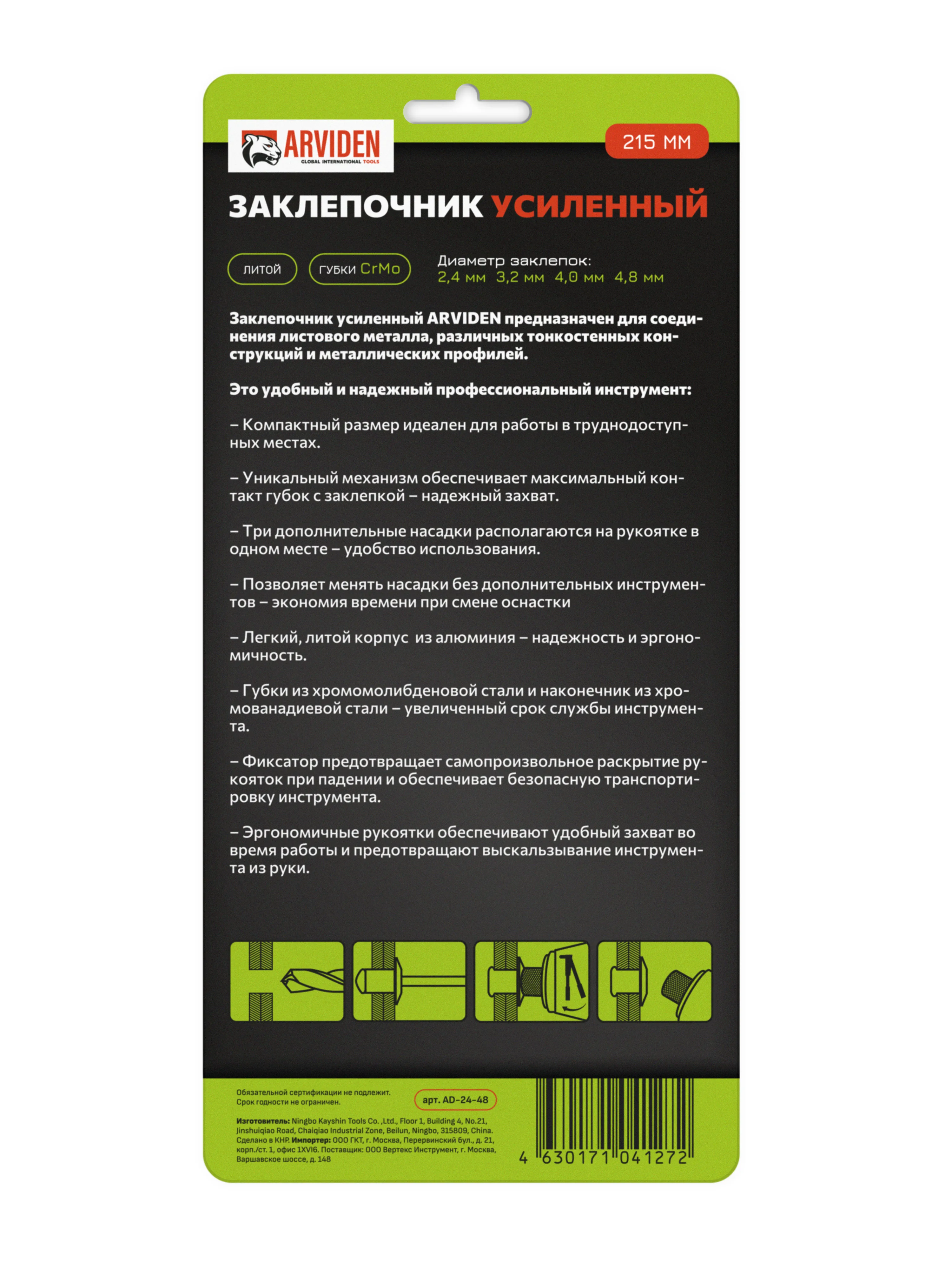 Заклепочник механический усиленный ручной 2. 4-4. 8 мм
